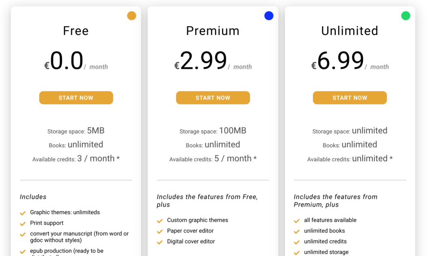 For that reason we have introduced a tiered subscription pricing system that lets the novice author get up and running for free, while for larger users needing more advanced tools and storage space (very useful for books that need frequent updates) we have two paid tiers of service, that can be paid monthly or annually and that can be cancelled at any time.